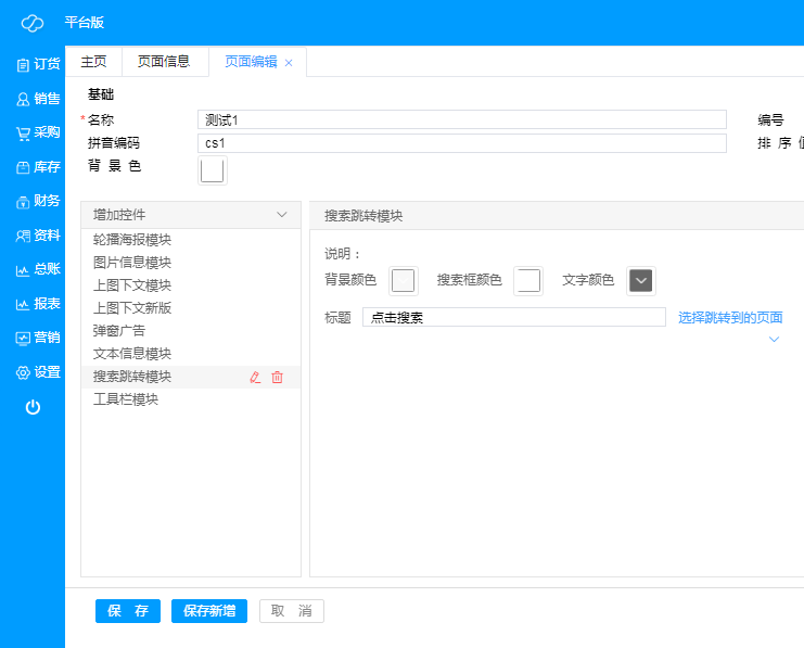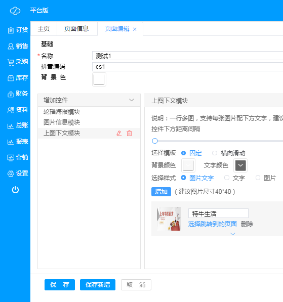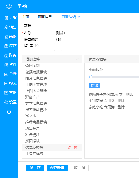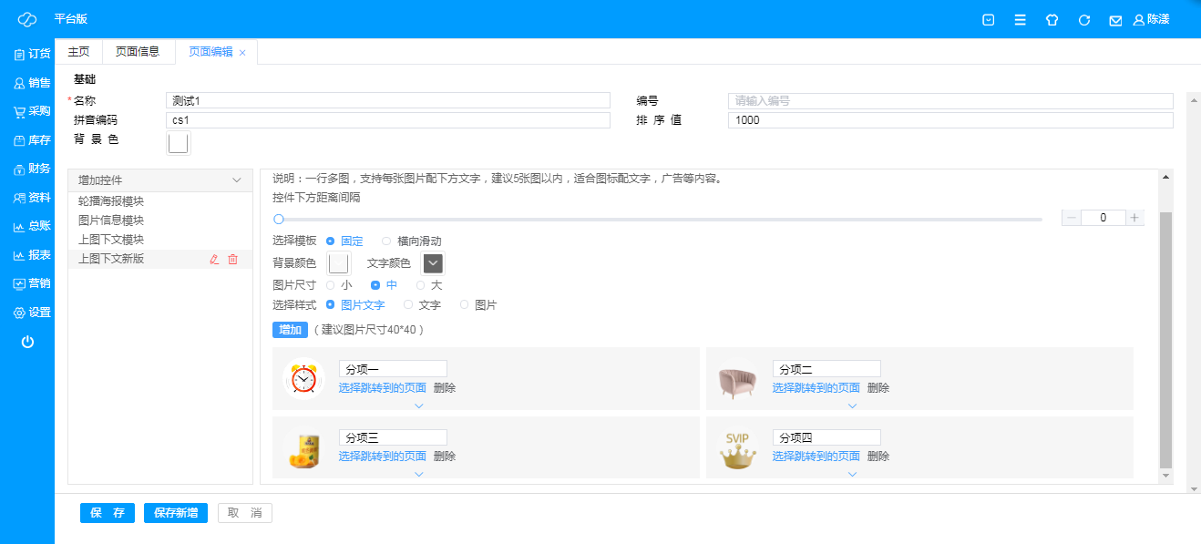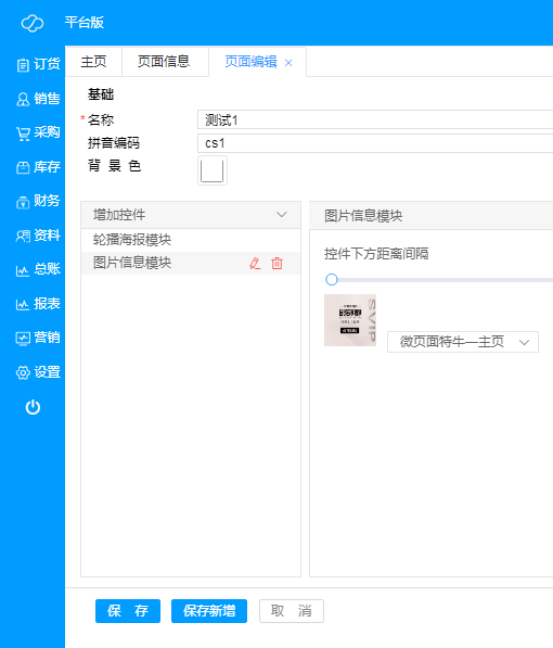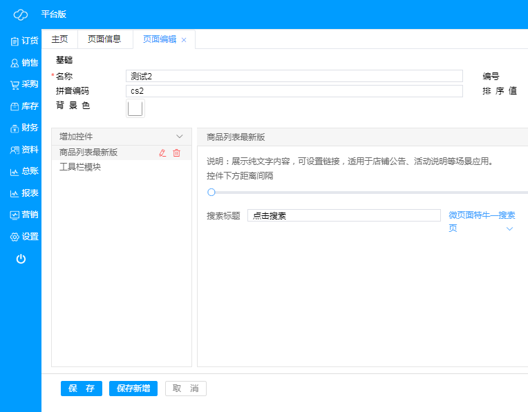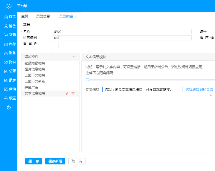 ·**新增微页面**:点击“新增”,即可新建微页面,根据需求进行编辑,微页面各种控件示例如下;