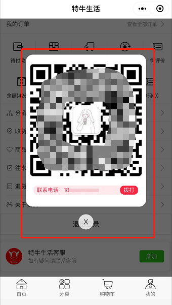 B、 客服信息:用于展示客服信息,可以展示微信二维码、电话等内容在【设置—平台设置】中设置,暂时不能在线联系客服;