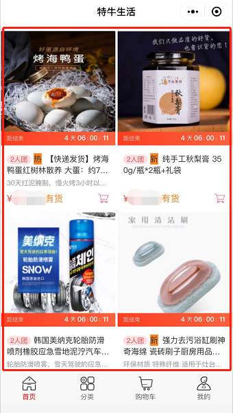 N、 拼团模块:即对已经做好的拼团商品进行展示,具体展示方式也同推荐商品模块的商品展示方式一样;