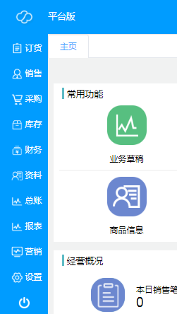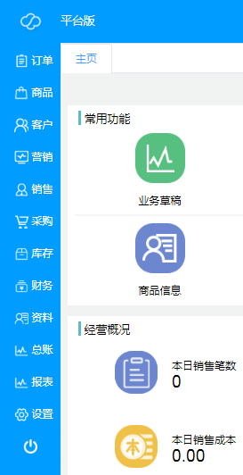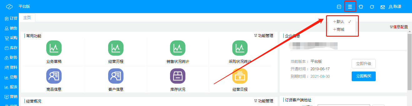 可以在后台切换应用场景,默认场景更适用于进销存应用场景,商城场景则更适用于以商城为主的应用场景,两个应用场景下数据互通,只是使用场景不同;