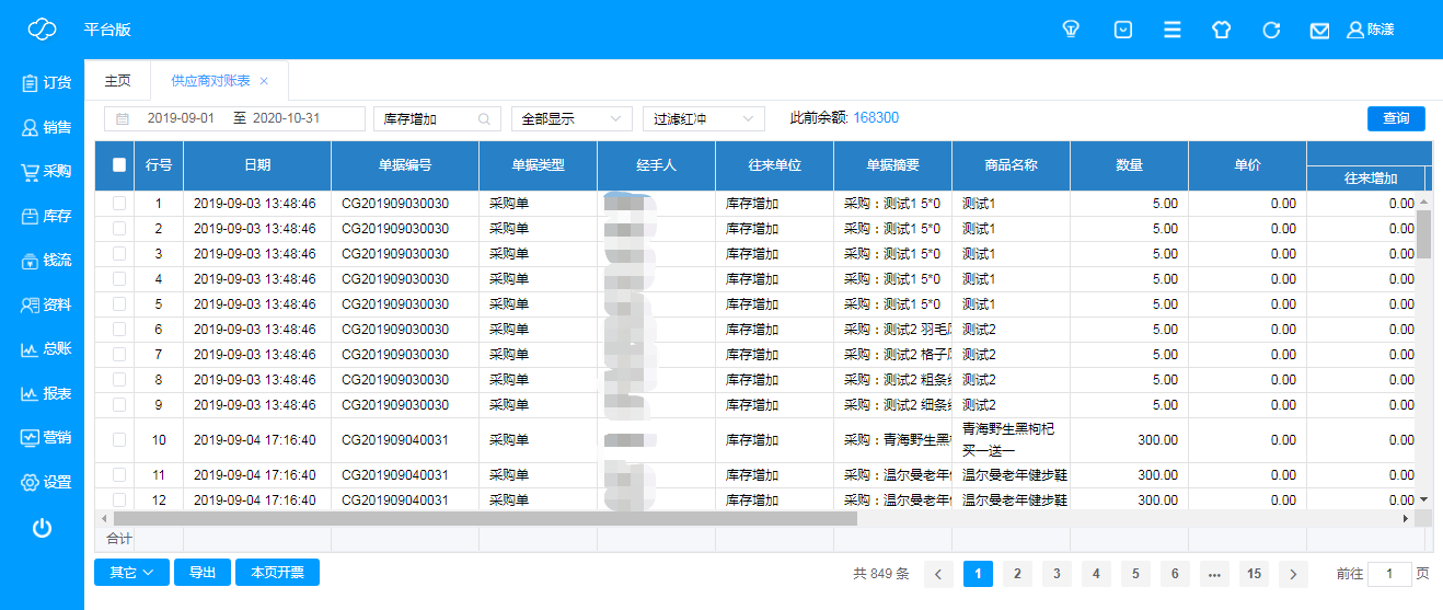 反映的是与供应商之间的往来,包含往来信息、对账信息,开票信息,双击单据编号进去可以查看往来明细,数据来源依据是销售及采购板块、财务板块下业务往来录入自动生成的;