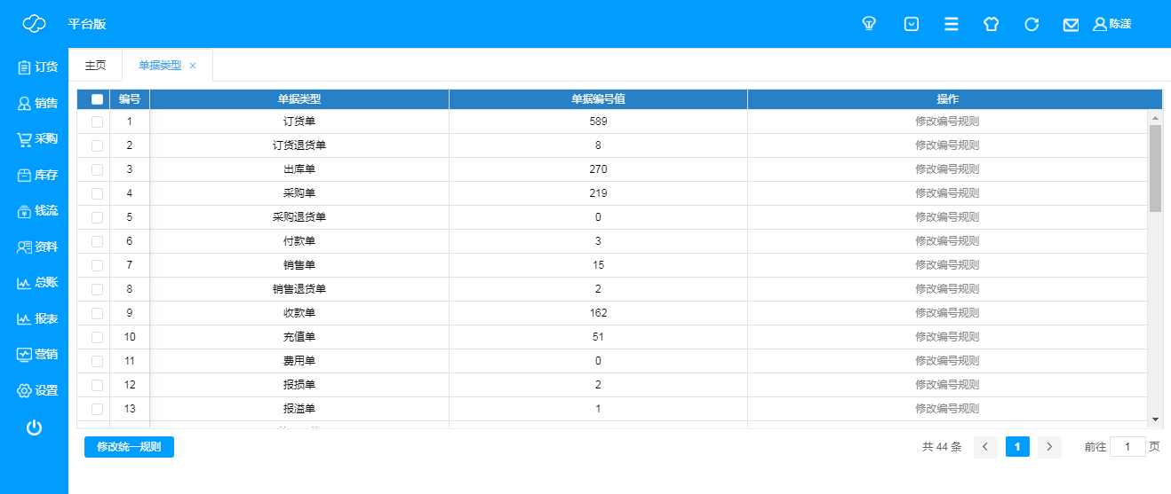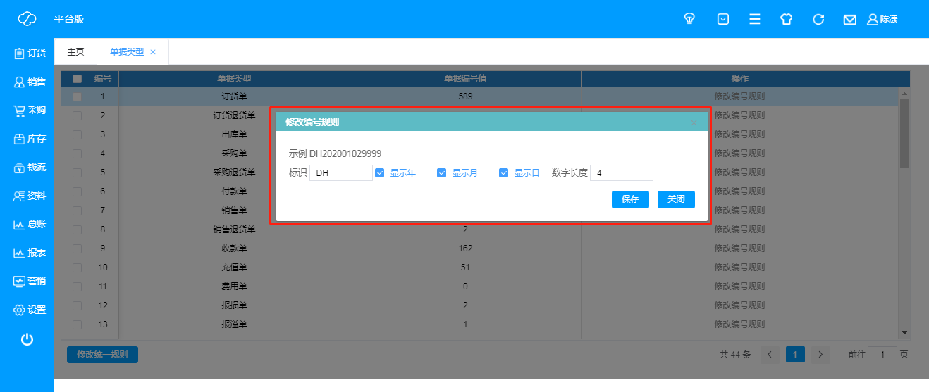 - 单据编号的规则设置和修改