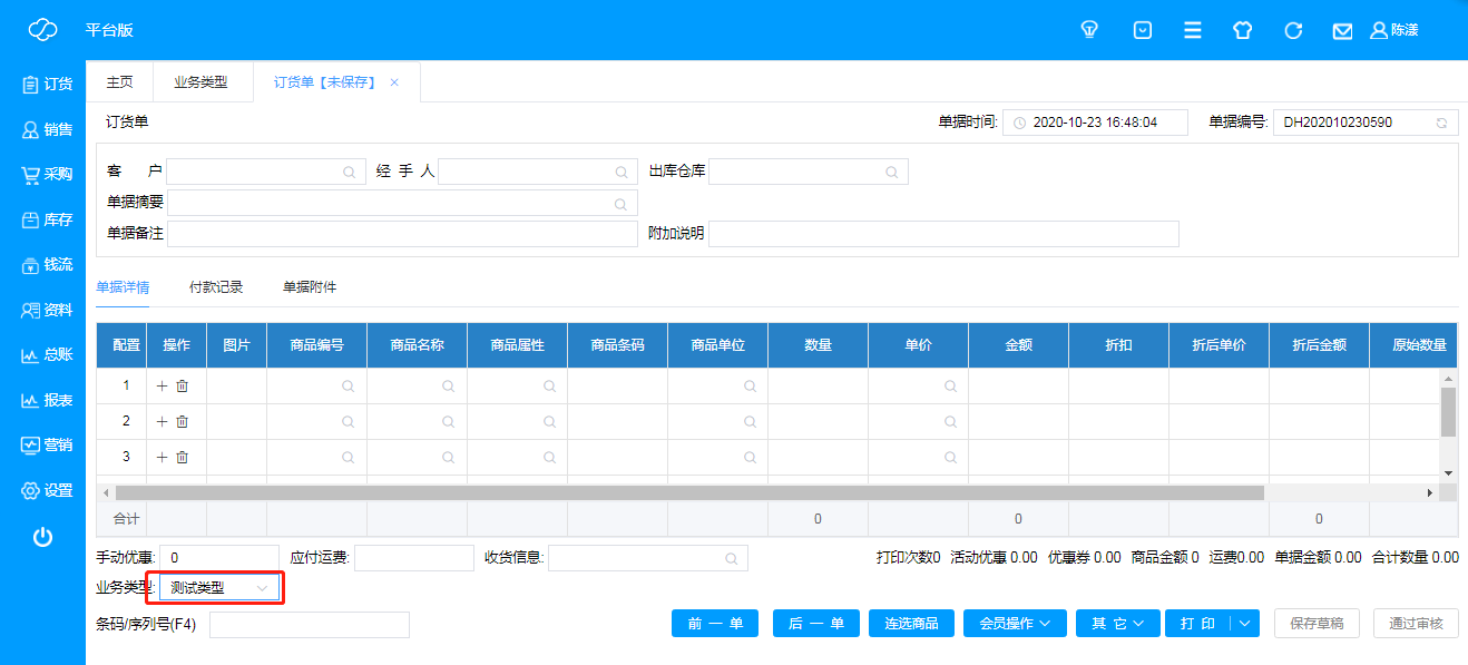 即根据实际情况,新增业务类型,新建单据时可选择对应的业务类型,便于单据的管理;