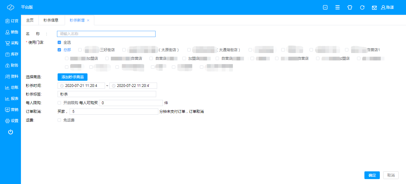 用于查询、编辑和新增秒杀信息内容,点击“新增”,即可新建秒杀信息;