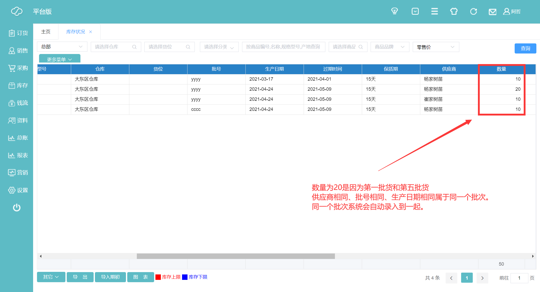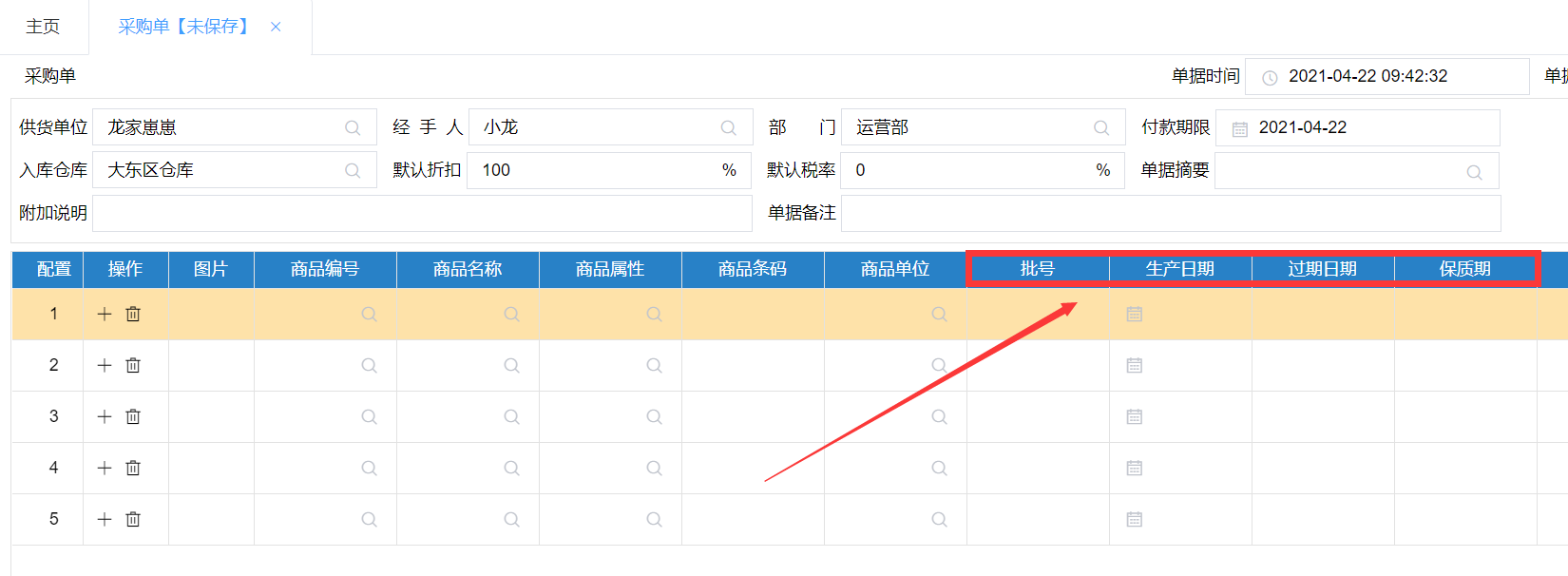 此时配置里就会显示批号、生产日期、过期日期和保质期。