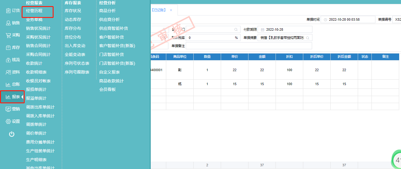已经审核的单据无法在业务草稿中查询,常用的查询方法有两种,一是销售-销售明细表查询,二是报表-经营历程中查询,此两种方法都可以通过单据编号、时间、经手人等条件快速查询,查询到具体单据后双击进入即可,此时单据显示已审核,进入单据编辑后单据附件操作方法与业务草稿中单据附件使用方法一致;
