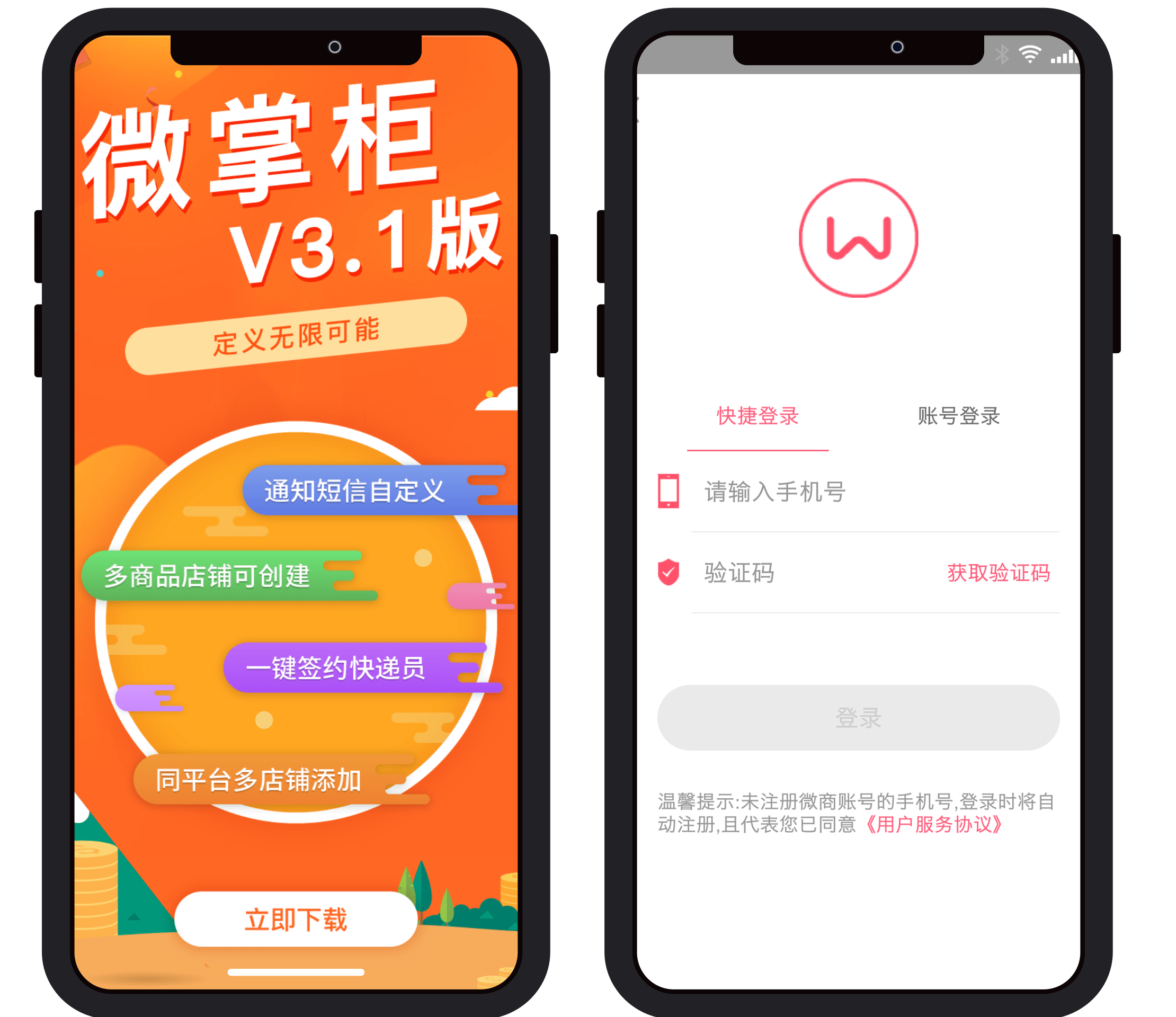 注册账号可同步使用于微掌柜APP、微掌柜火速猴小程序、微掌柜网页版;