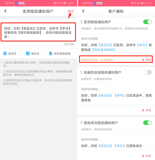## 怎么样自定义售后短信通知内容?