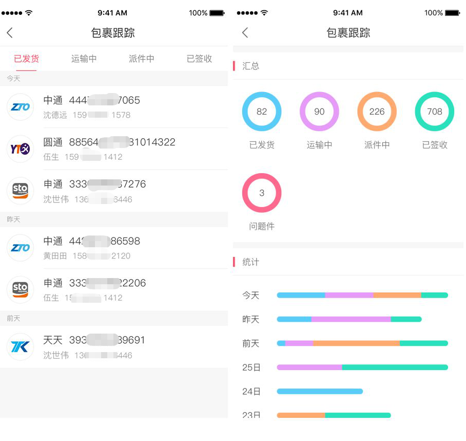 支持商家在【包裹跟踪】中对包裹进行全面跟踪,全局掌控,即时物流状态一览无余。