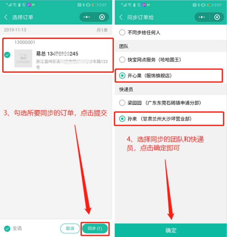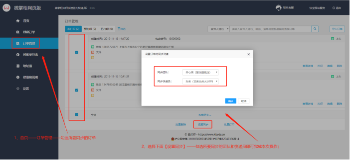 打开微掌柜网页版——首页订单管理——勾选所要同步的订单——选择【设置同步】——勾选所要同步的团队和快递员即可完成本次操作;