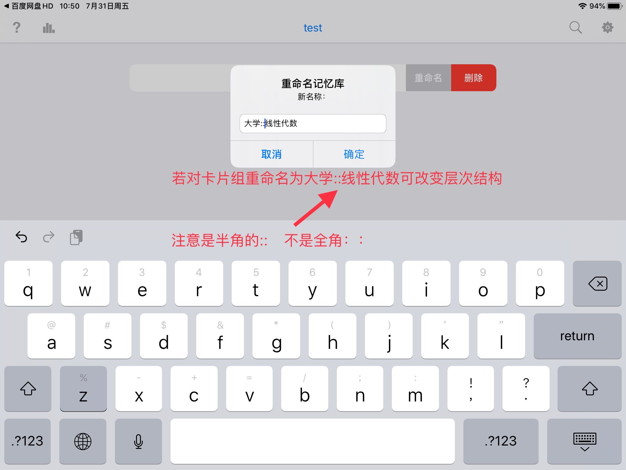 如果你想把「数学」这个牌组放入「理科」的目录之下,就把「数学」牌组命名为 理科::数学