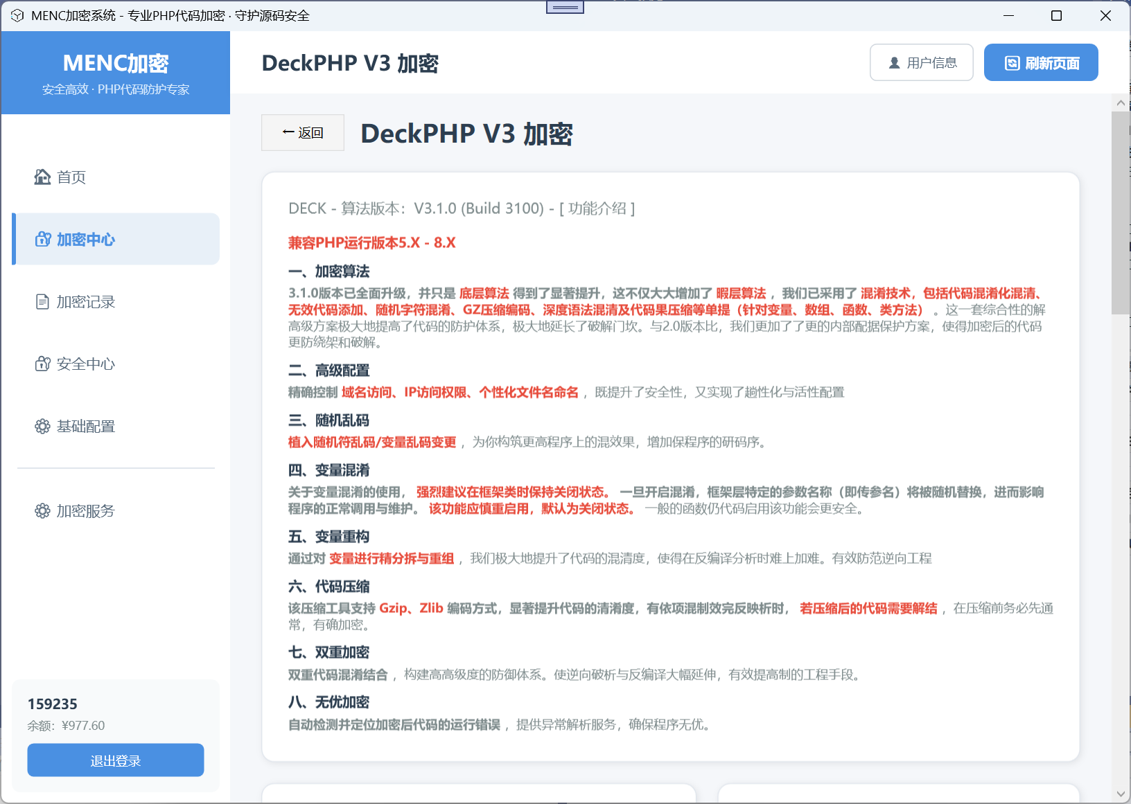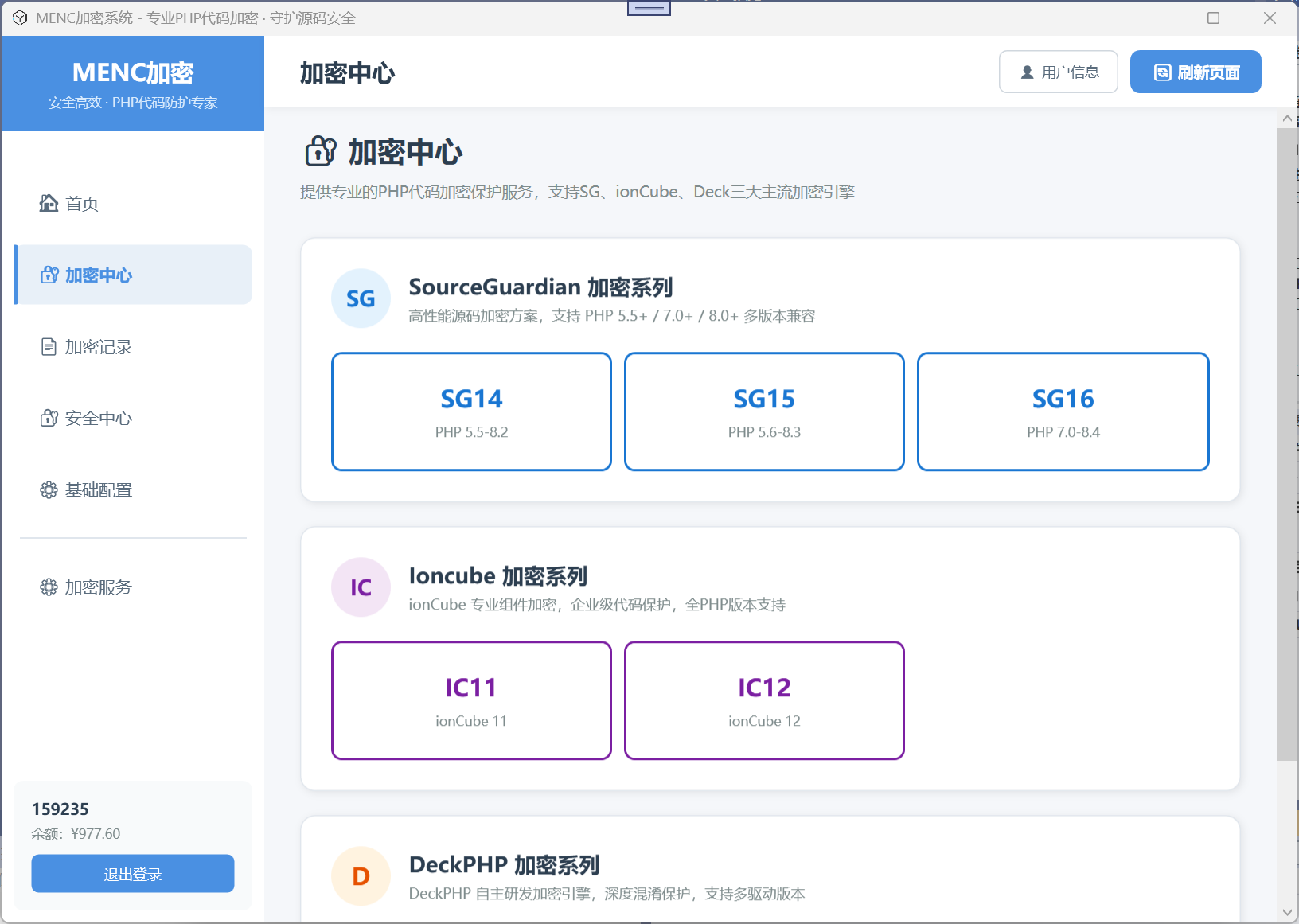 全面支持 **SourceGuardian / Ioncube / DeckPHP** 系列加密方式,