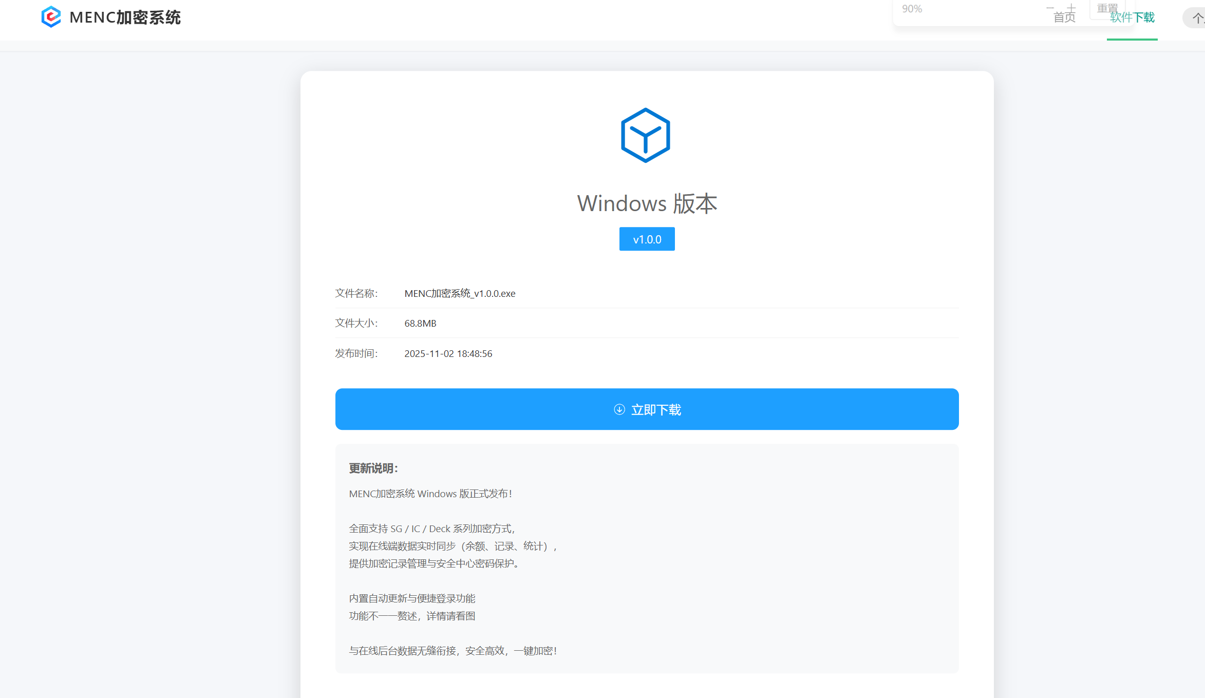 - 用户在前台点击 **“软件下载”** 按钮后,即可查看软件详情与更新记录。