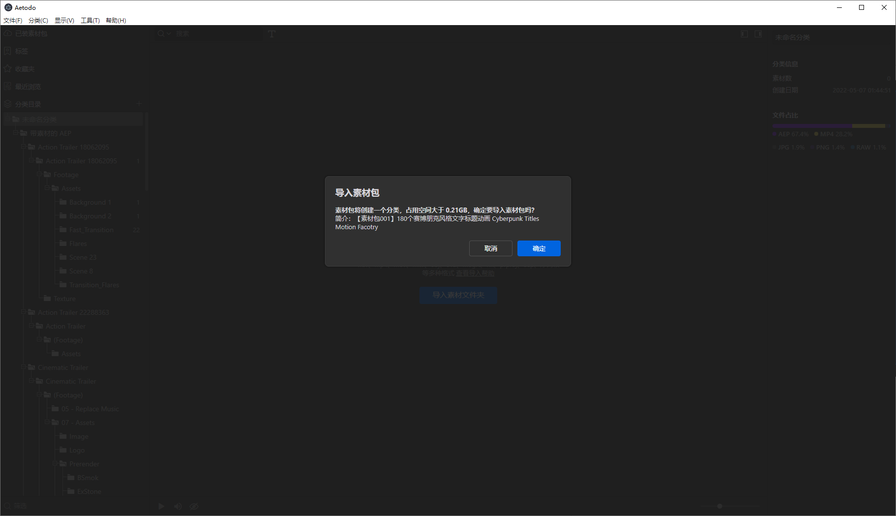 1、菜单栏--导入素材包(.aetodopack)
