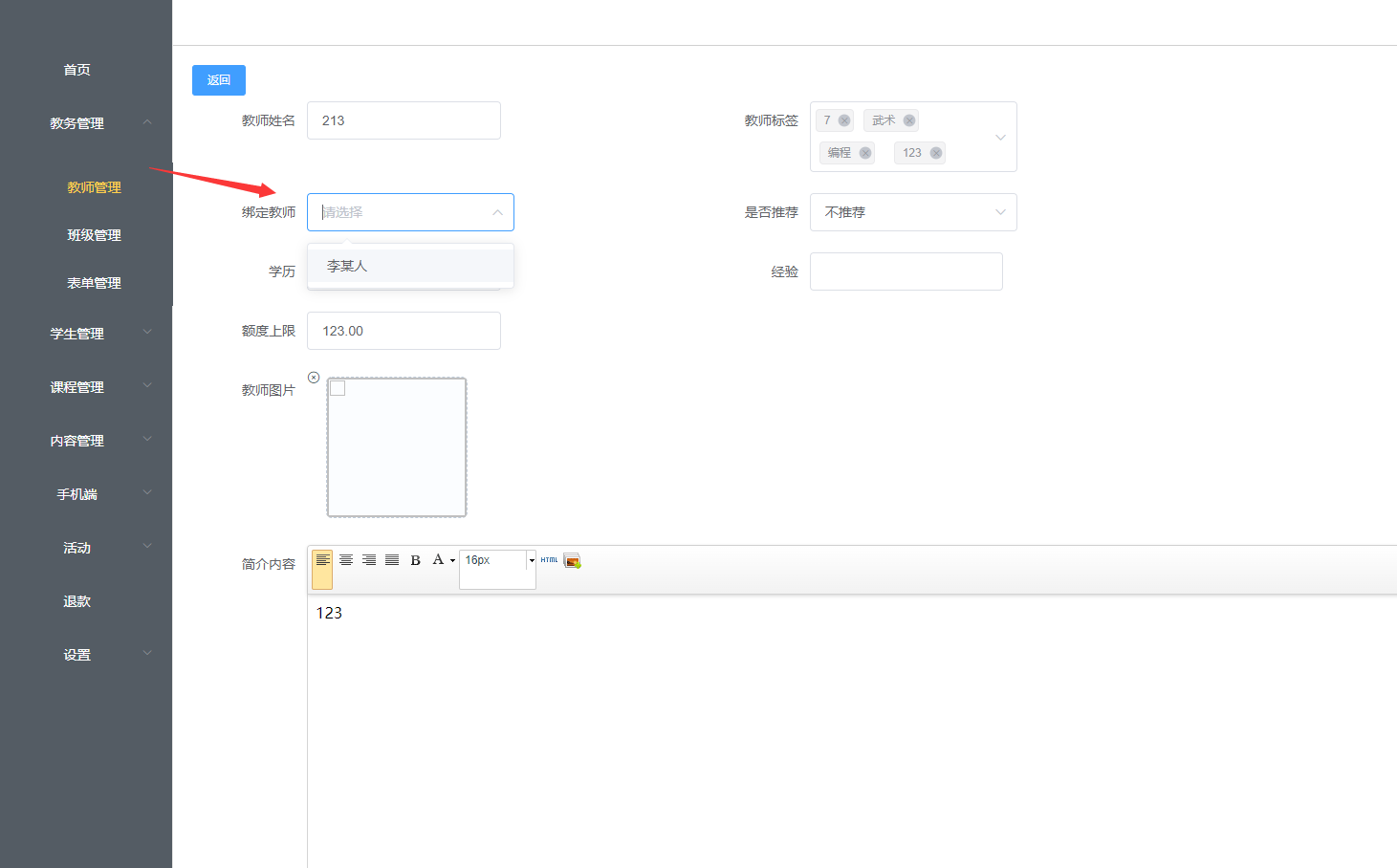 添加教师