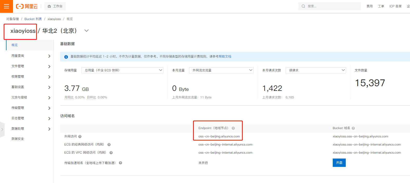 bucket和Endpoint在阿里云后台--对象存储OSS--bucket列表--需要配置的bucket桶--概览里获得