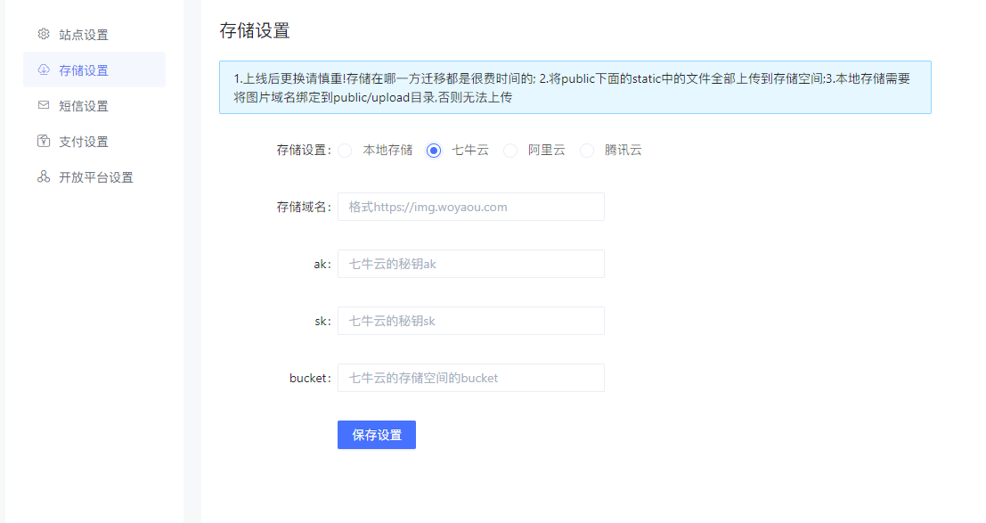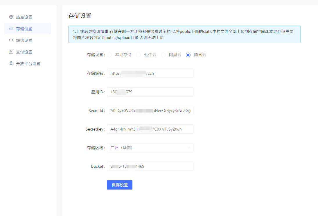 **注意:需要将 public/static 目录下的所有图片上传到云存储,不含目录**