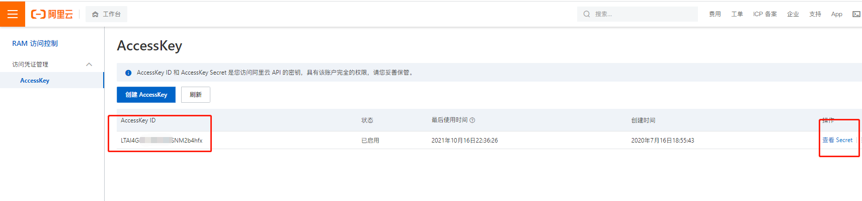 AccessKey_id和AccessKey_Secret在阿里云后台--AccessKey管理里创建或获得。
