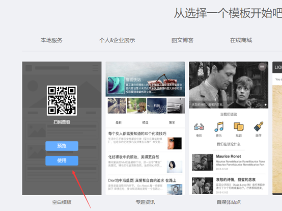 6.选择空白模版(点击一次使用即可,这里点击可能会没反应的,但是实际上已经新建好空白模版站点了。)