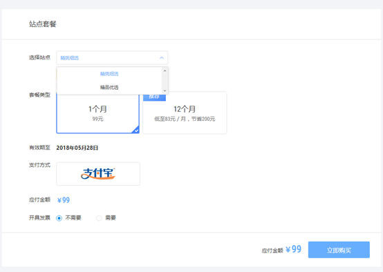 点击右上角 【升级套餐】对你的站点进行升级