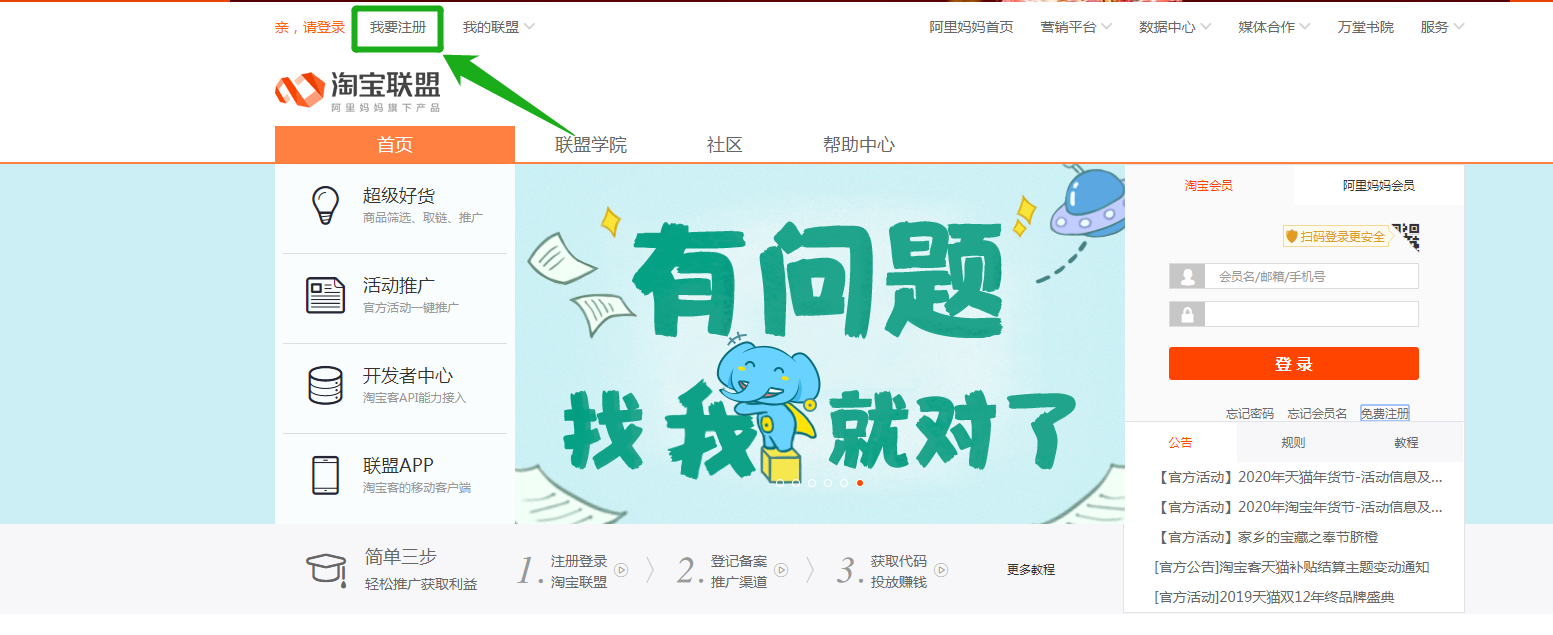 2.注册联盟账号
