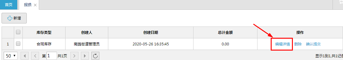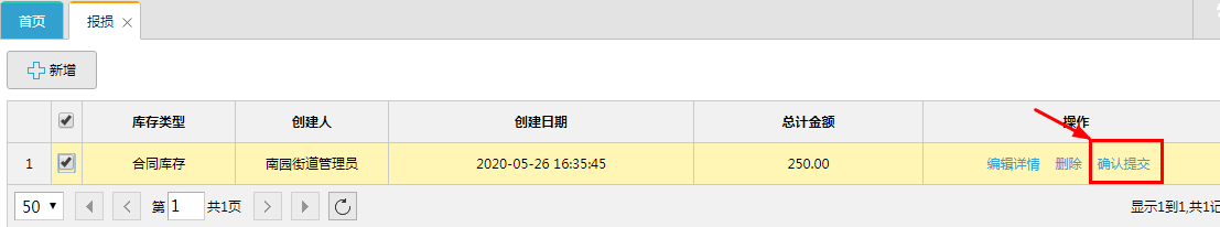 6.列表页面,信息补充完整后,点击确认提交按钮,即报损完成。