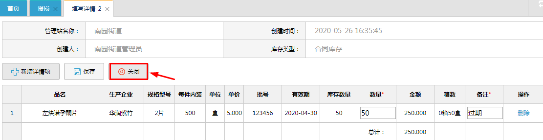 2、系统药具过期,但实际药具已发放,实际情况需要汇报市级,系统上过期药具需找市级开通报损权限,再操作报损步骤。