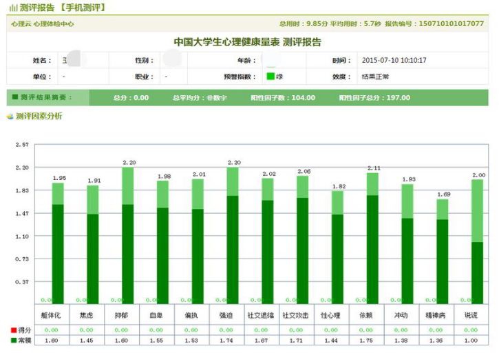 代表受测者心理状态正常,无明显异常状况。