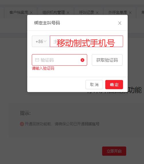 ## 使用前,用户单位需要提交话术、资质开通回拨功能