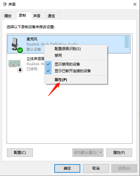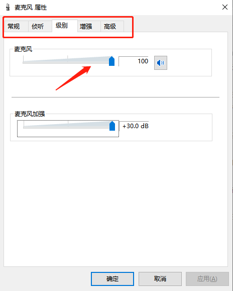 2.如果耳麦检查已经插好,接下来鼠标右击麦克风点击属性,如图1,点击之后,选择上方标签栏的级别,选择后将麦克风音量拉到最高,这里麦克风加强先不要拉到最高,避免出现其他问题。 如图2。