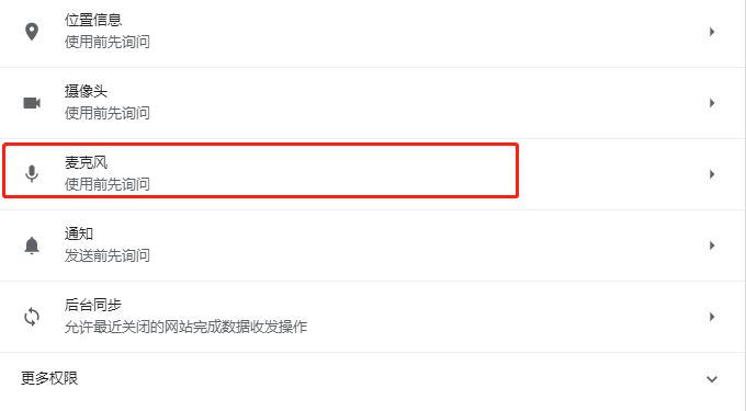如果右上角没有这个标识,则鼠标左击浏览器右边的三个点,选择设置,接着点击左边的 隐私设置和安全性,选择网站设置,鼠标下拉,找到麦克风选项,将权限打开 操作步骤如下图