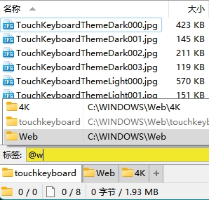 即时查找功能可以实现即时查找或过滤文件;通过通配符或范围选择文件;跳转到其它路径或文件夹标签;以及执行 CLI 命令(<kbd>></kbd> 内置命令、<kbd>?</kbd> cmd 及 <kbd>|</kbd> WSL)。如图所示: