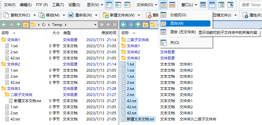 1. 右键单击平面视图按钮,选中 `混合`(或左键单击两次平面视图按钮),让所有子文件混合显示