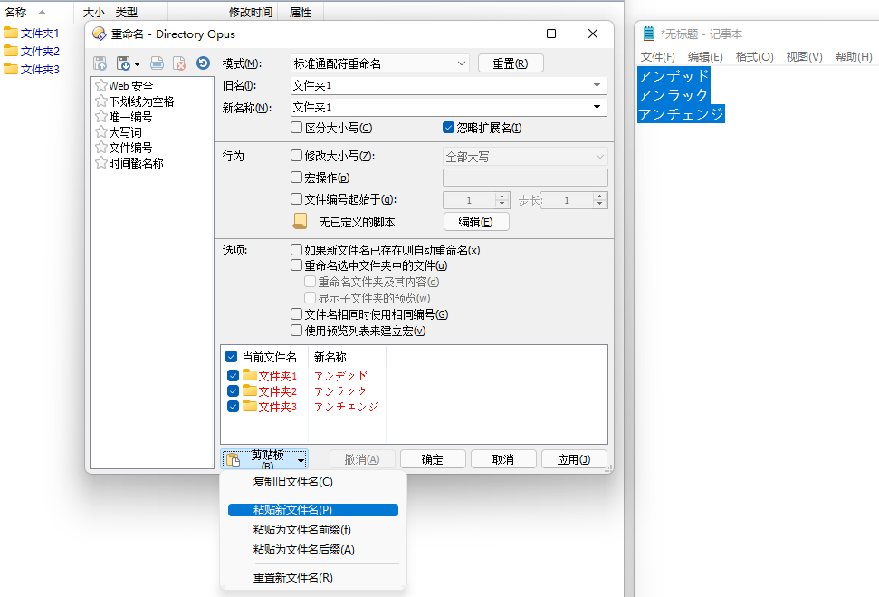 除了直接从剪贴板导入文件名外,也可将剪贴板中的列表导入为文件名的前缀或后缀。