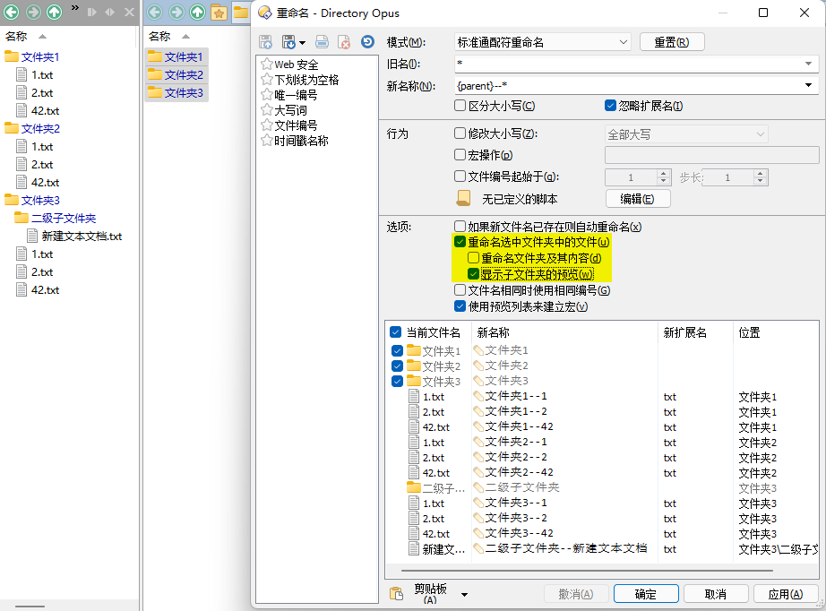 需要注意的是,这个选项也会对选中文件夹中所有子文件夹的文件进行重命名,且不能关闭。