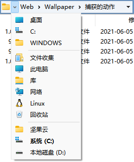 除了显示一些常见位置外,如果当前路径太长它还会显示地址栏中未能显示的剩余地址,比如上图中的 `C:` 和 `WINDOWS` 两项。