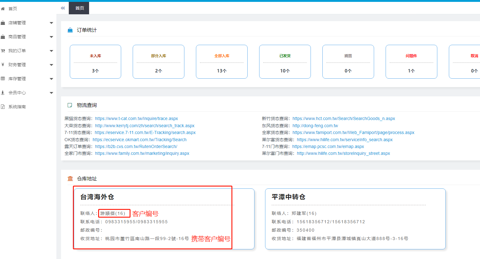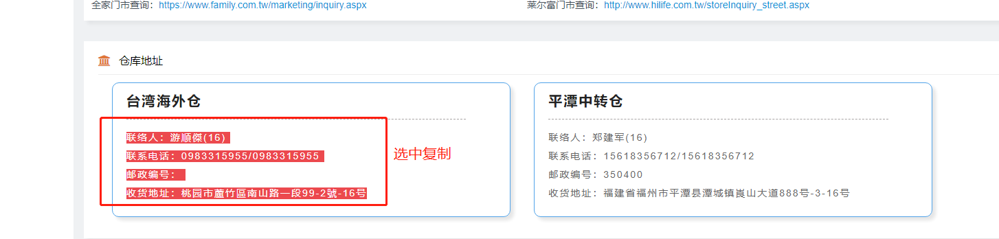 #### 在系统首页,获取仓库地址后,可在购物平台添加收货地址或提供給发货方將货物发送仓库