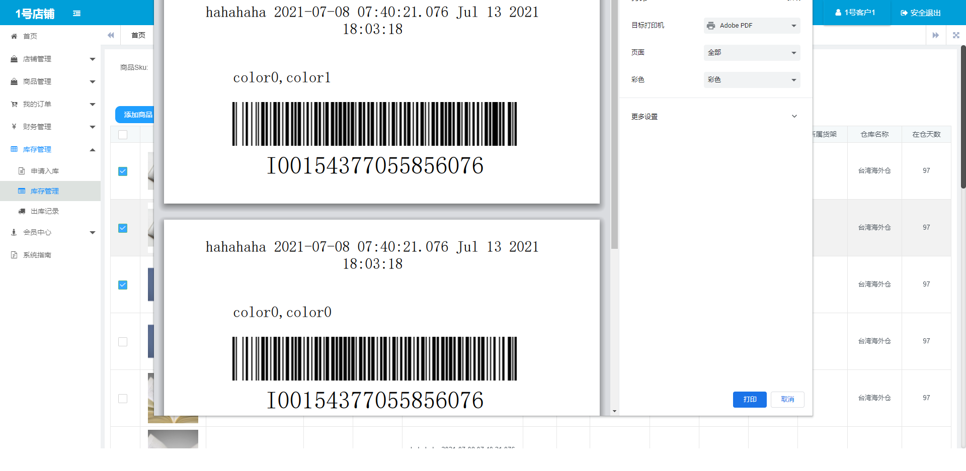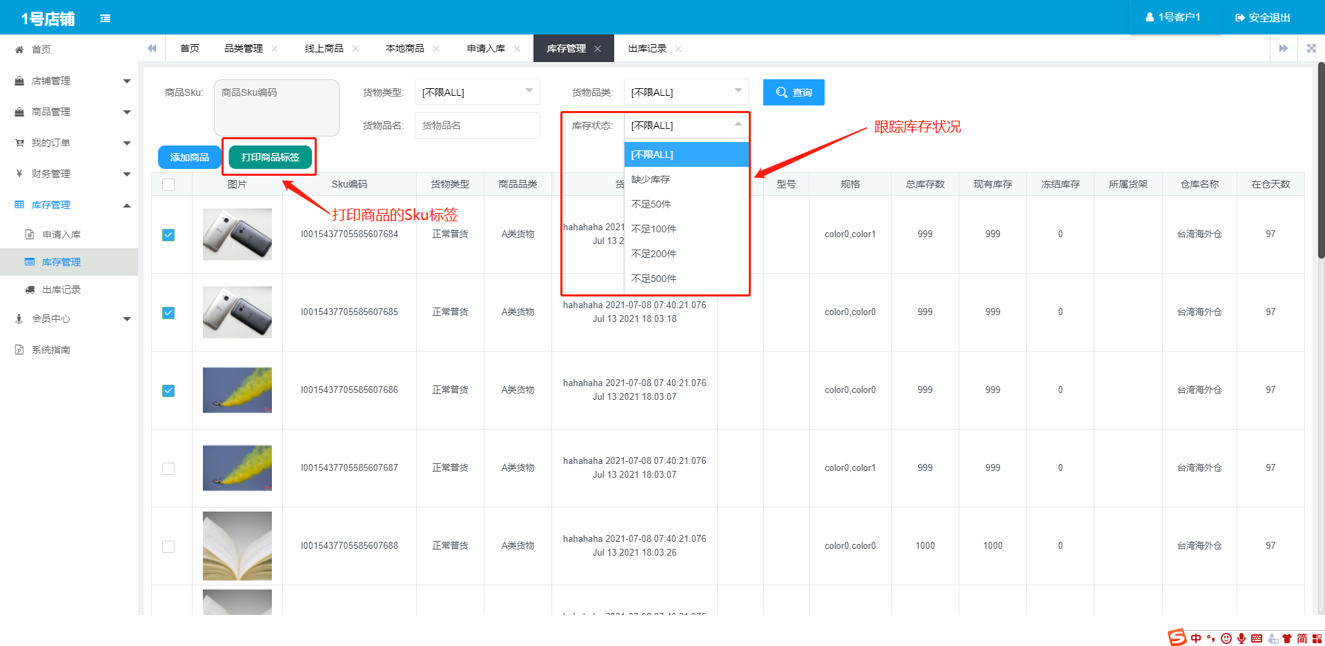 #### 系统菜单:库存管理-库存管理  #### 商品标签:<span style="color:red">请使用100x50标签纸打印</span>