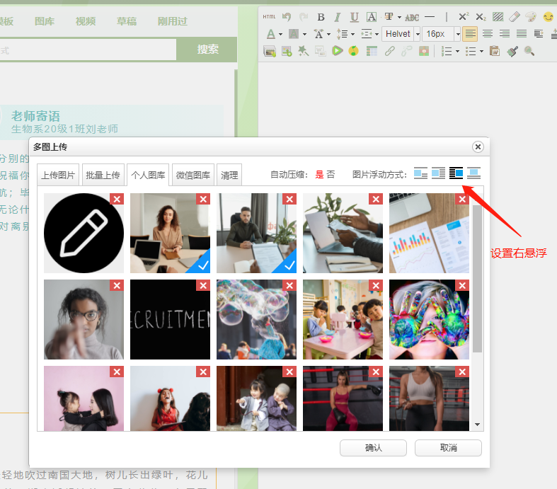 未加链接的图片间无缝隙显示很简单,只要在插入图片是选择右悬浮即可