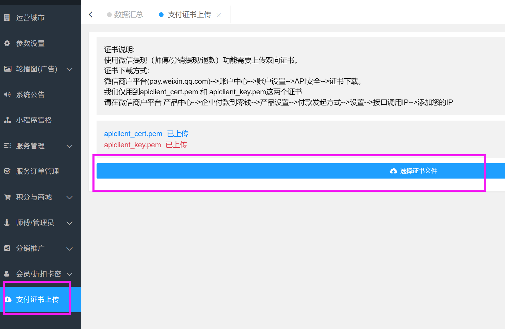 后台上传证书