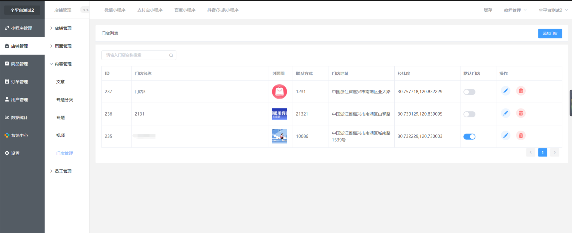 * 门店管理用于1.自提订单的门店选择,2.小程序端的门店列表展示 3.核销员的所属门店 4.预约商品的门店选择