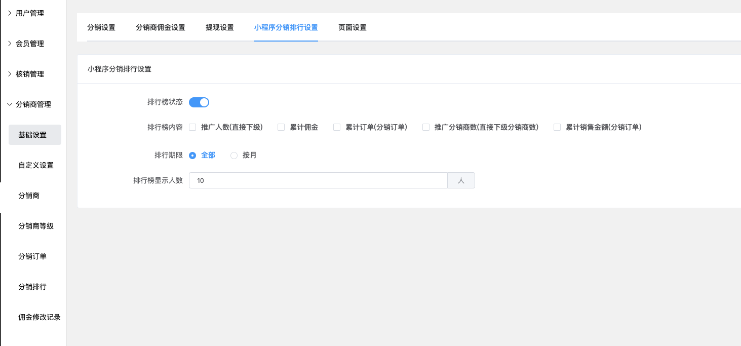 #### 小程序分销排行设置