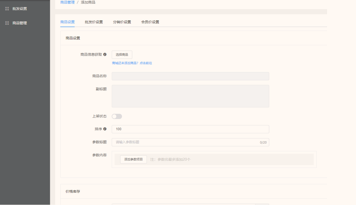 批发商品需从商城拉取后,编辑商品的批发价格。若商品的批发价未设置,则不在小程序端显示