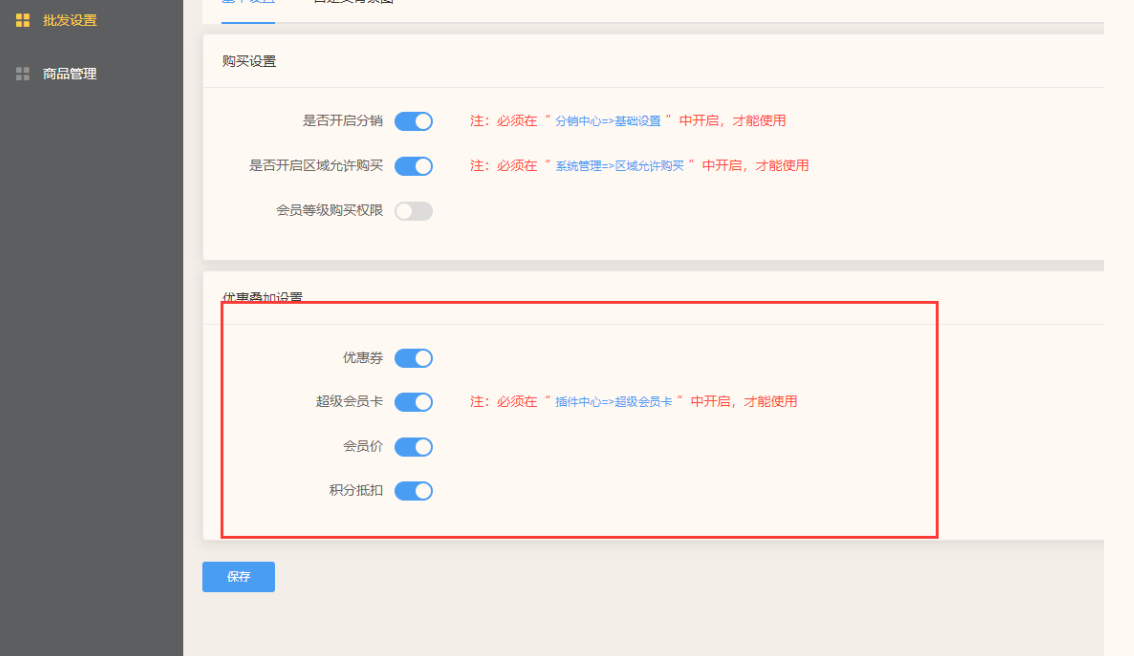 商品批发插件商品,可使用优惠券,会员价、超级会员卡和积分抵扣