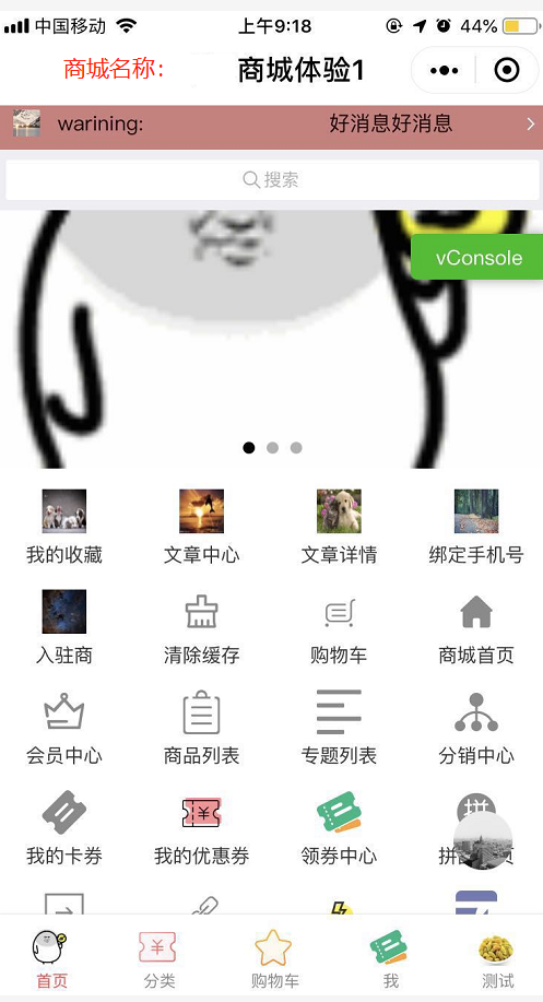 * 首页转发设置:自定义标题和图标(注意:设置完后在小程序端清理完缓存后刷新下页面)