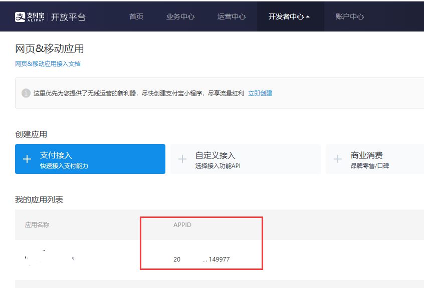 \*\*7:获取app\_id 返回支付宝开放平台 网页&移动应用首页 \*\*