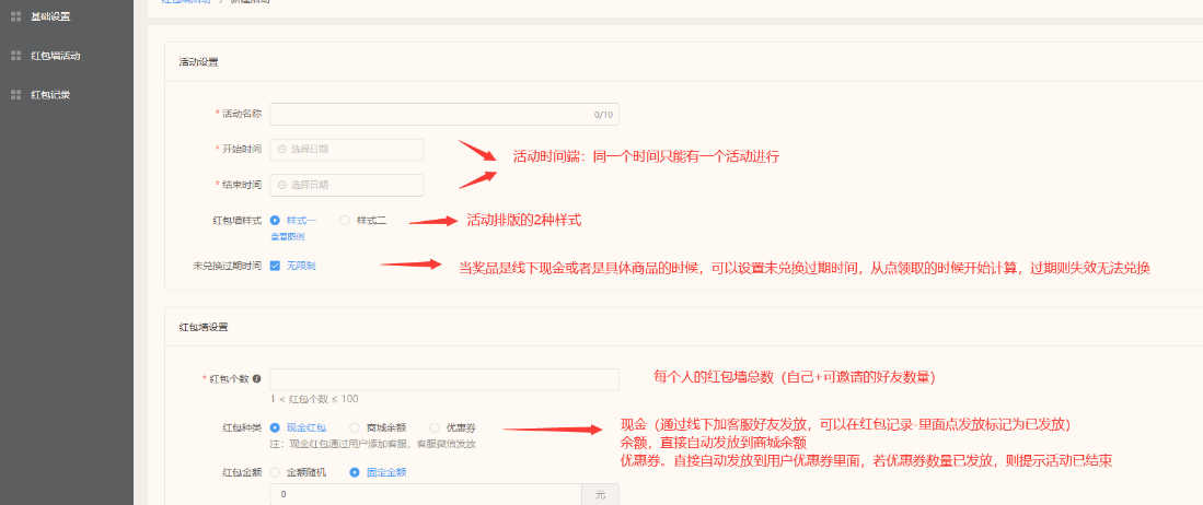 创建红包活动