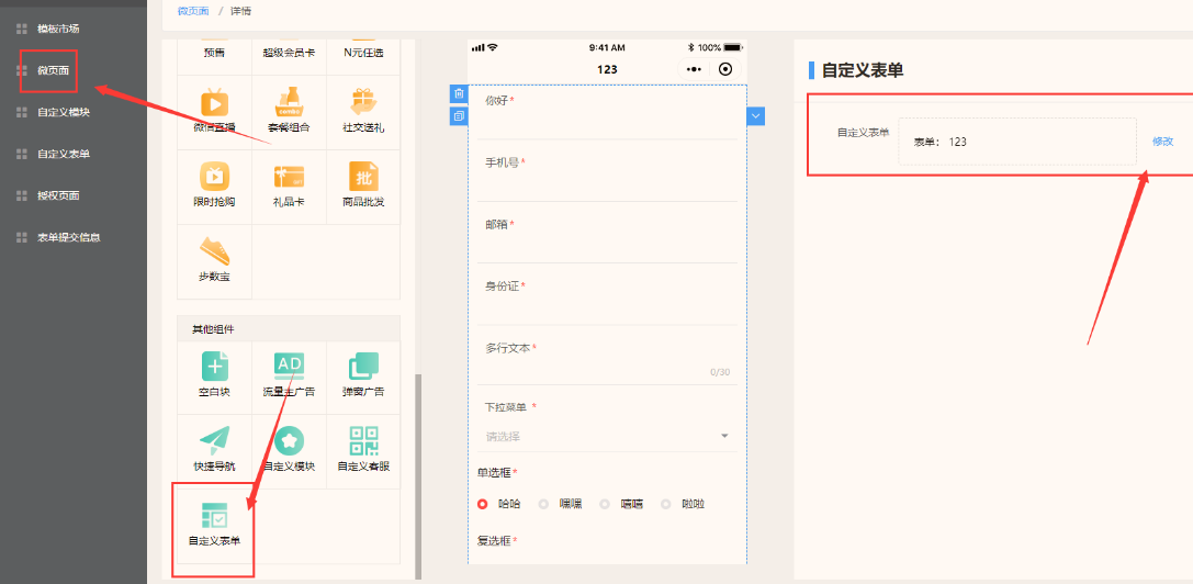 ## 3.在微页面有引用表单(一个微页面只能引用一个表单)