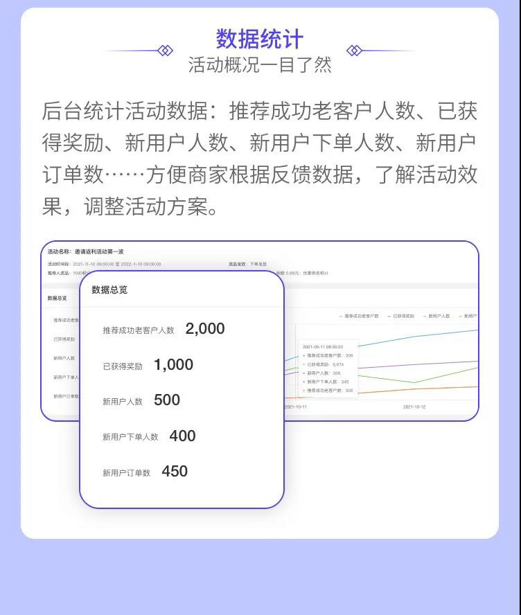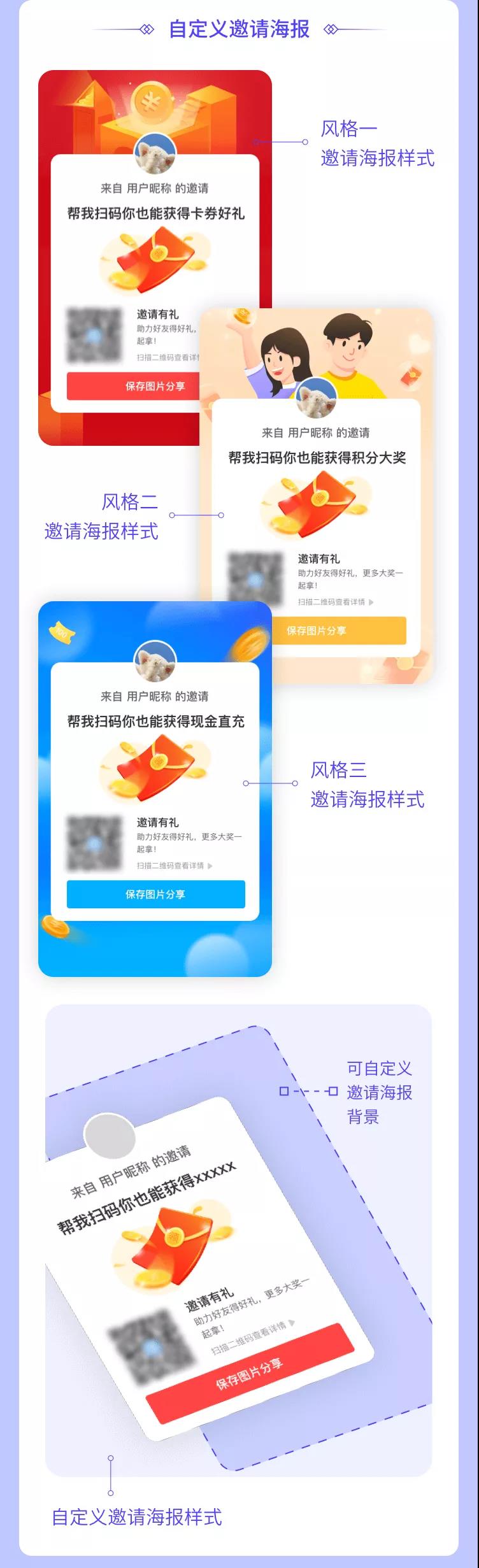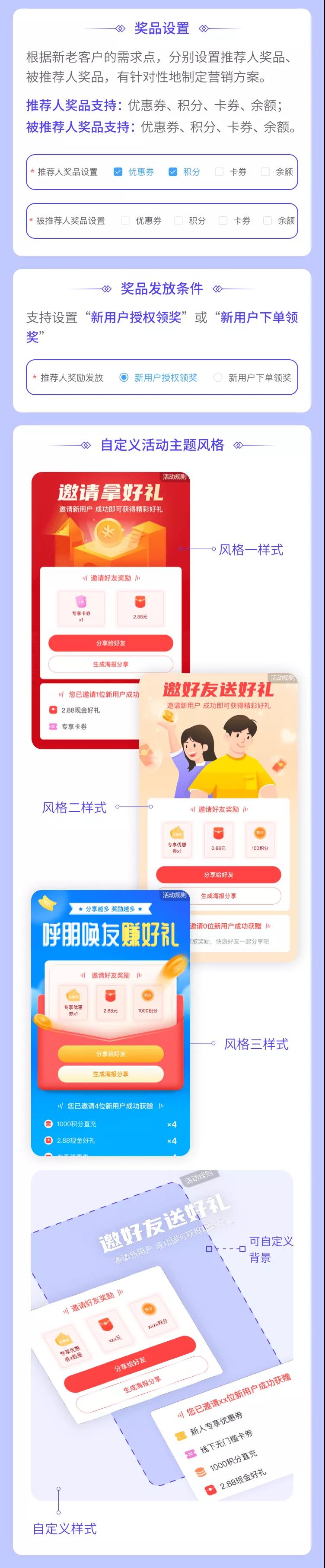 活动模式:主要目的是获取新粉丝,可选择“老带新”模式;推荐人跟被推荐人都有奖励;