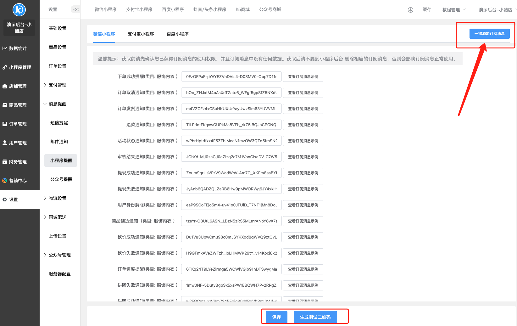 2.增加这个类目之后,可以通过商城的一键获取自动拿到订阅消息